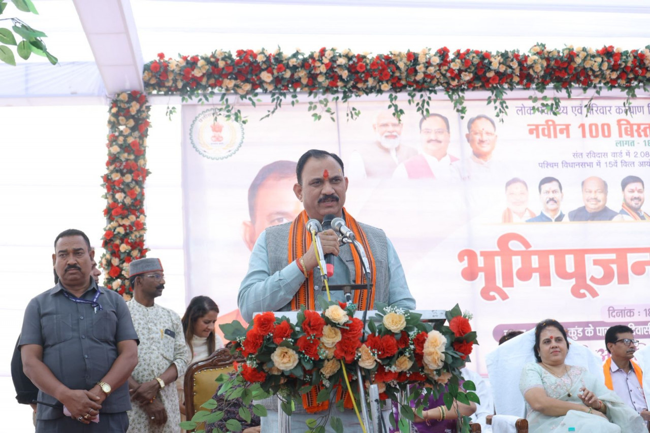 स्वास्थ्य मंत्री श्री श्याम बिहारी जायसवाल आज विकासखंड धरसींवा अंतर्गत सरोना, रायपुर में 100 बिस्तर वाले नवीन अस्पताल भवन के निर्माण हेतु भूमिपूजन कार्यक्रम में शामिल हुए।