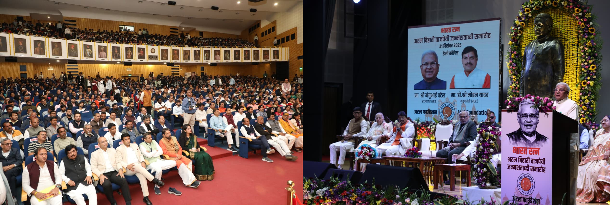राज्यपाल श्री मंगुभाई पटेल ने अटल जन्म शताब्दी समारोह को संबोधित करते हुए कहा कि आज भारत रत्न स्व. श्री अटल बिहारी वाजपेयी जी की जन्म शताब्दी के पावन अवसर पर विचार अभिव्यक्त करने का अवसर मिलना उनके लिए गर्व और हर्ष का विषय है। उन्होंने कहा कि स्व.
