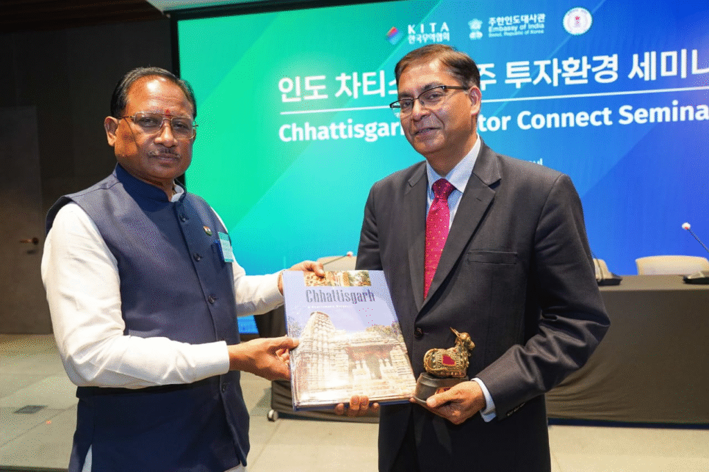 मुख्यमंत्री श्री विष्णुदेव साय ने आज दक्षिण कोरिया की राजधानी सियोल में आयोजित छत्तीसगढ़ इन्वेस्टर कनेक्ट कार्यक्रम में कोरिया इंटरनेशनल ट्रेड एसोसिएशन और निवेशकों के समक्ष छत्तीसगढ़ में निवेश की संभावनाओं की विस्तार से जानकारी देते हुए कहा कि छत्तीसगढ़ अपनी प्रो-एक्टिव एवं विकासोन्मुख औद्योगिक नीति 2024–30, प्रचुर प्राकृतिक संसाधनों और प्रशिक्षित जनशक्ति के बल पर वैश्विक निवेश और औद्योगिक सहयोग के लिए पूरी तरह तैयार है।