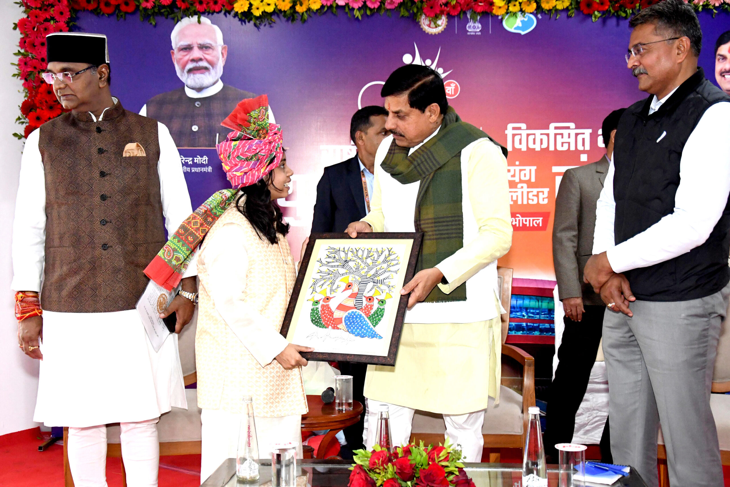 इस वर्ष नई दिल्ली में मध्यप्रदेश के 47 युवा, विकसित भारत यंग लीडर संवाद कार्यक्रम और 29 युवाओं का दल राष्ट्रीय युवा उत्सव में सहभागिता करेगा। मुख्यमंत्री डॉ. यादव से संवाद के लिये ये युवा मुख्यमंत्री निवास पधारे थे। मुख्यमंत्री डॉ. यादव की उपस्थिति में वंदे-मातरम् के सामूहिक गान के साथ कार्यक्रम आरंभ हुआ। सुश्री साक्षी पटेरिया ने मुख्यमंत्री डॉ. यादव का आत्मीय स्वागत किया। कार्यक्रम में सुश्री अंशिका मिश्रा ने गीता उपदेश के माध्यम से युवाओं को संदेश दिया। युवा संवाद कार्यक्रम में खेल एवं युवा कल्याण मंत्री श्री विश्वास कैलाश सारंग एवं खेल संचालक श्री राकेश गुप्ता भी उपस्थित थे।